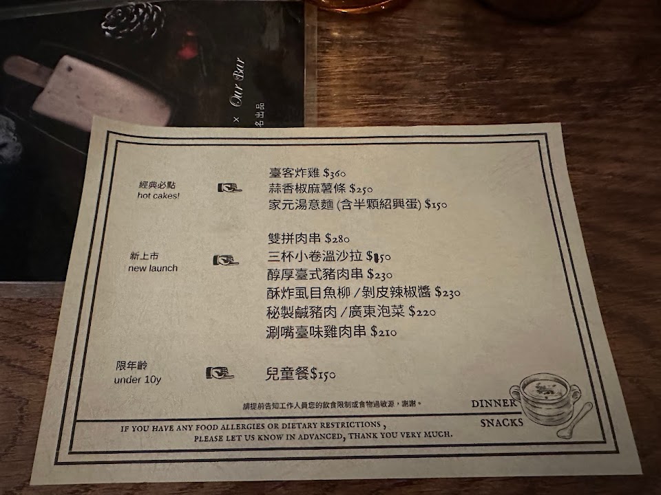 等了兩個小時也沒找到座位。極其忙碌。台南有很多酒吧。價格昂貴,最低消費較高。可以跳過這篇。