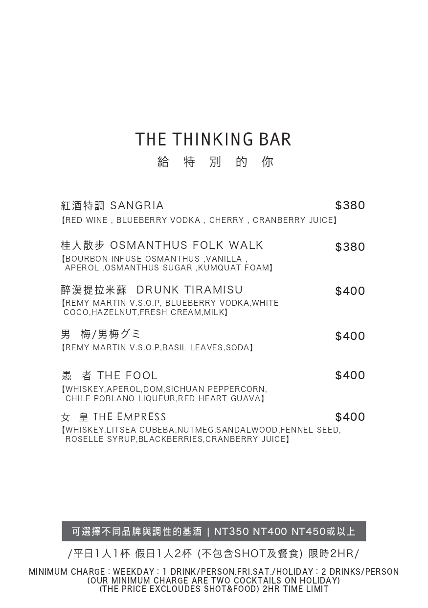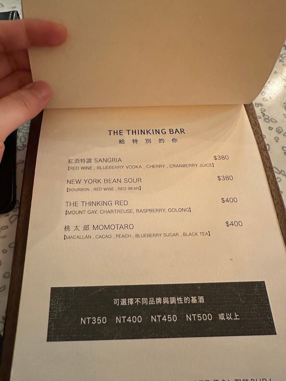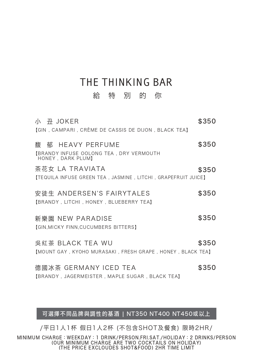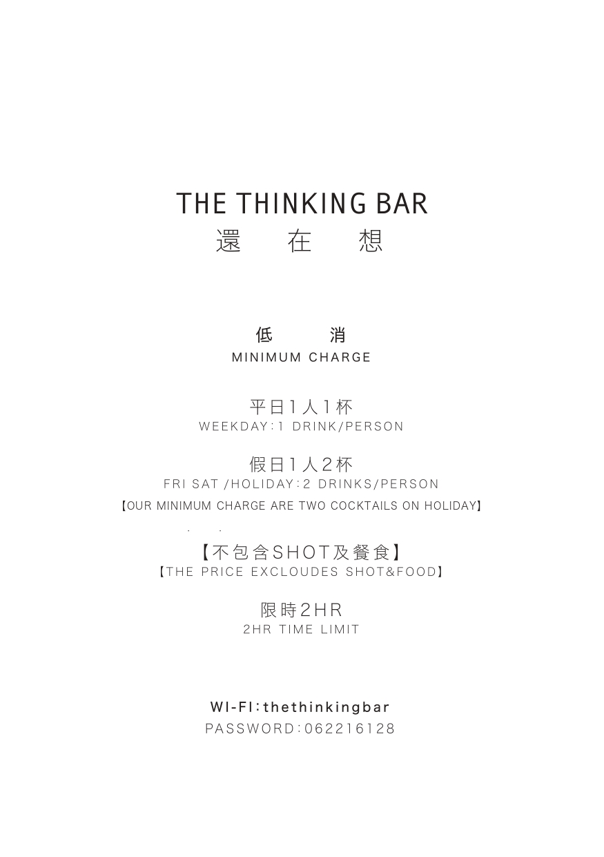 2024最新在地推薦餐廳的菜單_The Thinking BAR 還在想-台南調酒吧 台南精緻酒吧 台南中西區推薦酒吧 台南精緻調酒 禁菸酒吧 台南酒吧口袋名單 威士忌 經典調酒 雞尾酒吧 2023酒吧 特色 評價 好評的菜單、圖片