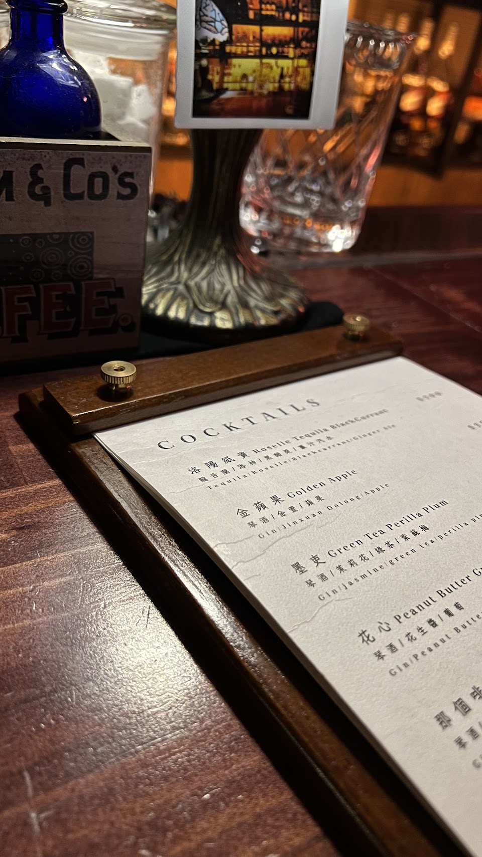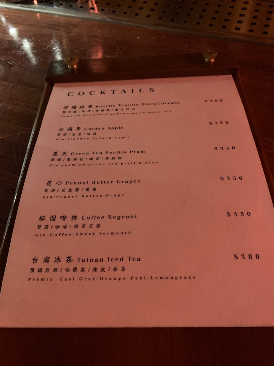前陣子來嘗試這間店,點了兩杯菜單的調酒,其中一杯的內容物在其他間有看過類似的,想說試試看,結果在這裡喝到的感覺真的極奇難喝,有個很怪的味道!好像…感冒糖漿嗎?