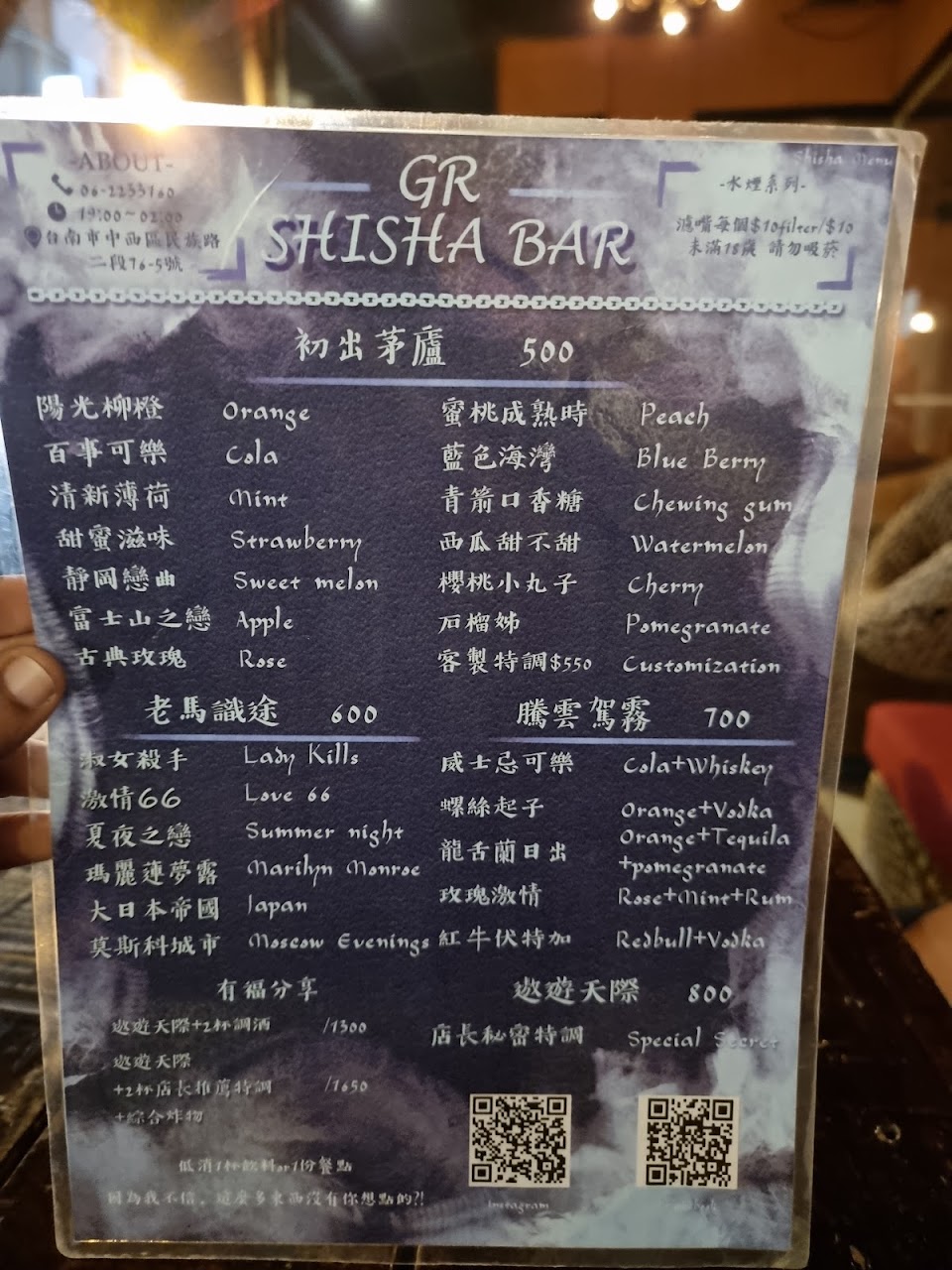 2024最新在地推薦餐廳的菜單_GR Shisha Bar(GR水煙館)的菜單、圖片