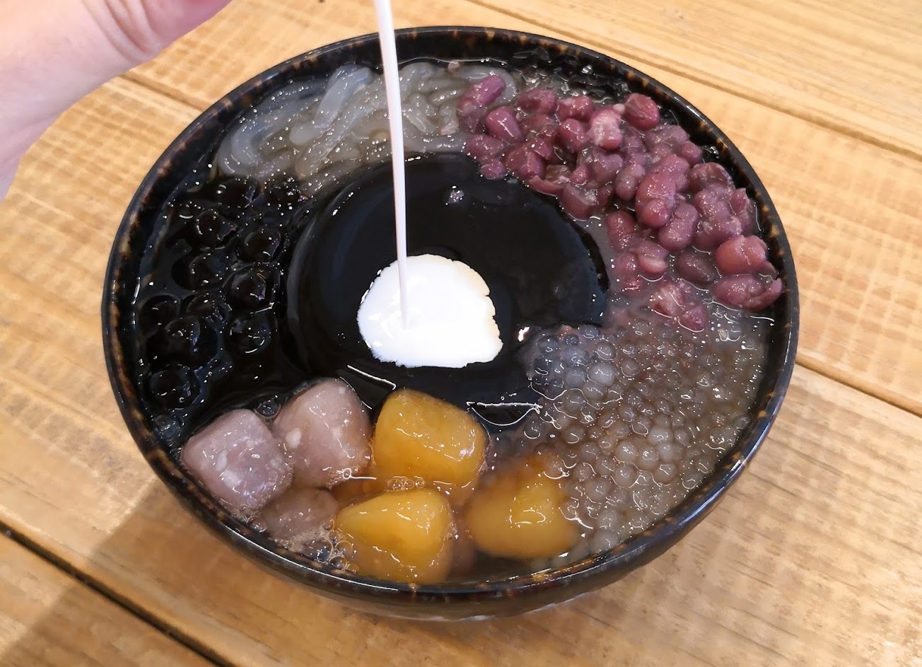 仙草凍本身就有甜,單吃應該也不錯。用容器結凍,樣子好看感覺就美味一些,個人偏愛單純配料,點了綠豆紅豆都好吃。