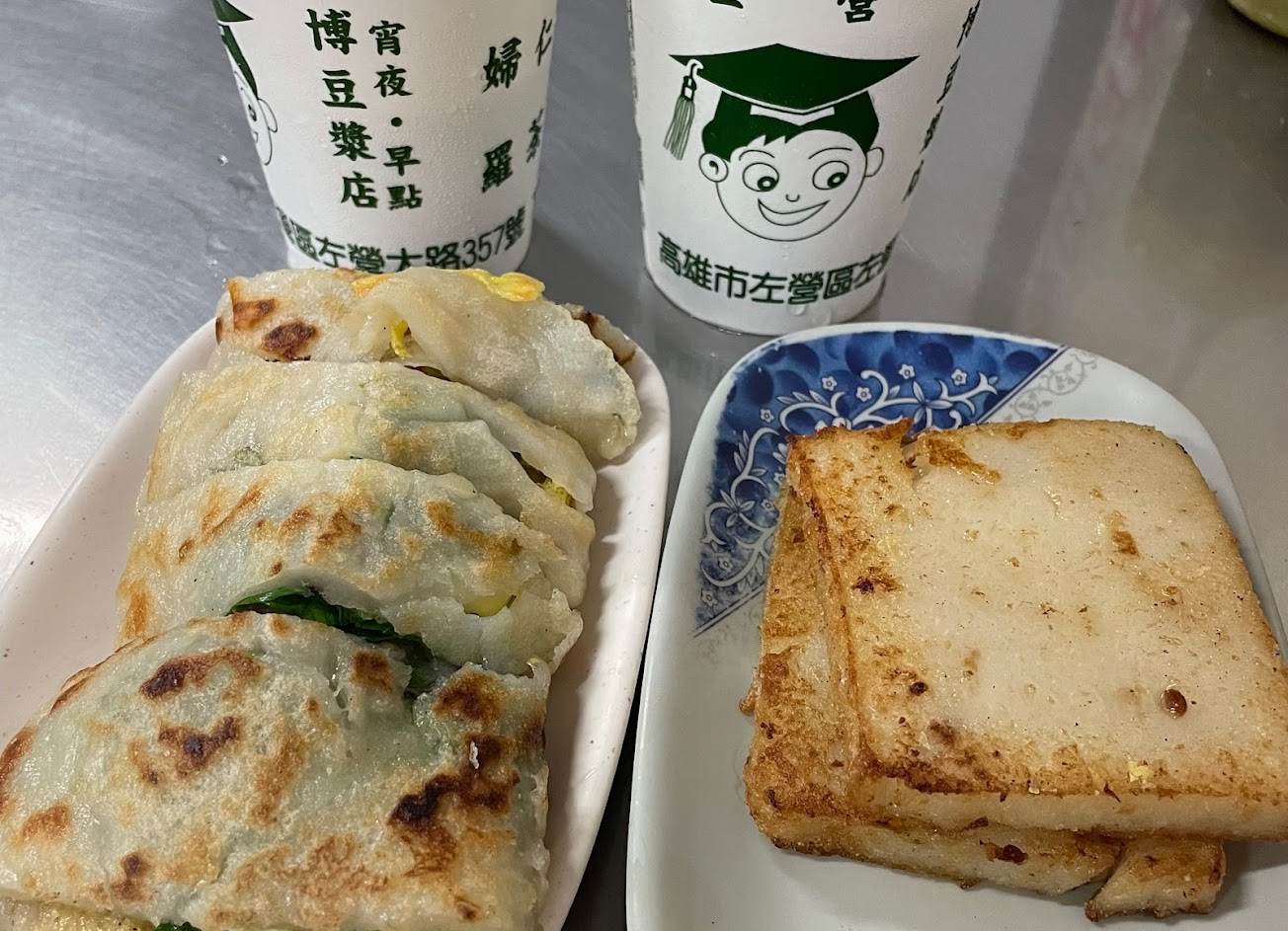點了一個蔬菜蛋餅+蘿蔔糕+巧克力吐司➕大杯豆漿。
