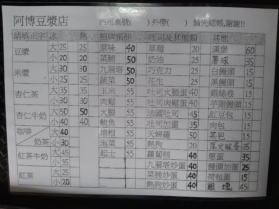 坦白說,阿博的蛋餅CP值真的不高!內惟大廟前的早餐攤位中,就有類似的蛋餅,一份20,大小約阿博的4/5,雖然看起來不太衛生,也僅有一種口味,但著實對得起它的價位了!