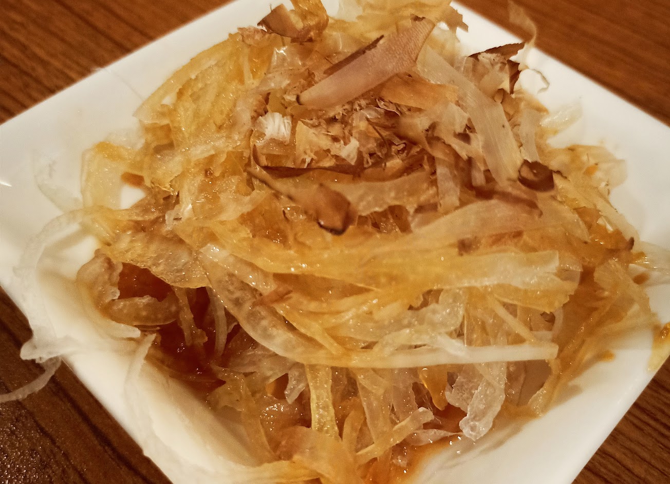 這是我第一次吃到刨成薄片的醃蘿蔔 一般都是切丁的 這樣口感比較脆