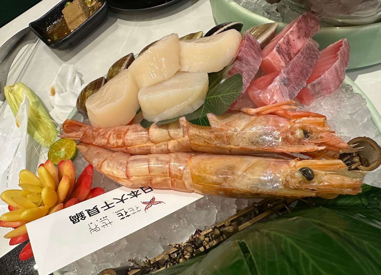 店面寬敞明亮,還要一處角落可供大家拍照的網美裝飾,桌面位子都蠻大兩人座也很寬敞,可能雙人套餐盤數較佔空間的關係,有龍蝦在大廳的水箱裡,客人點餐時可以現撈。 這次點了雙人套餐和牛的,肉品部分有30盎司,真的蠻多的,結果還吃不完,日本和牛部分表現很不錯,油花漂亮,在鍋內涮幾下後便可直接入口,入口即化,香氣十足。 飲料部分無限暢飲,提供汽水(可樂、雪碧、蘋果醋之類) 蝦子給了16支,蝦子就感覺不是很新鮮,有些吃起來粉粉的,且偏硬,沒有Q彈的感覺。雙人套餐的兩個菜盤其中一個可以換成蛤蜊,蛤蜊蠻大顆的野蠻新鮮。 整體來說蠻好吃的,蝦滑湯底也很不錯,雖然價格略高一些