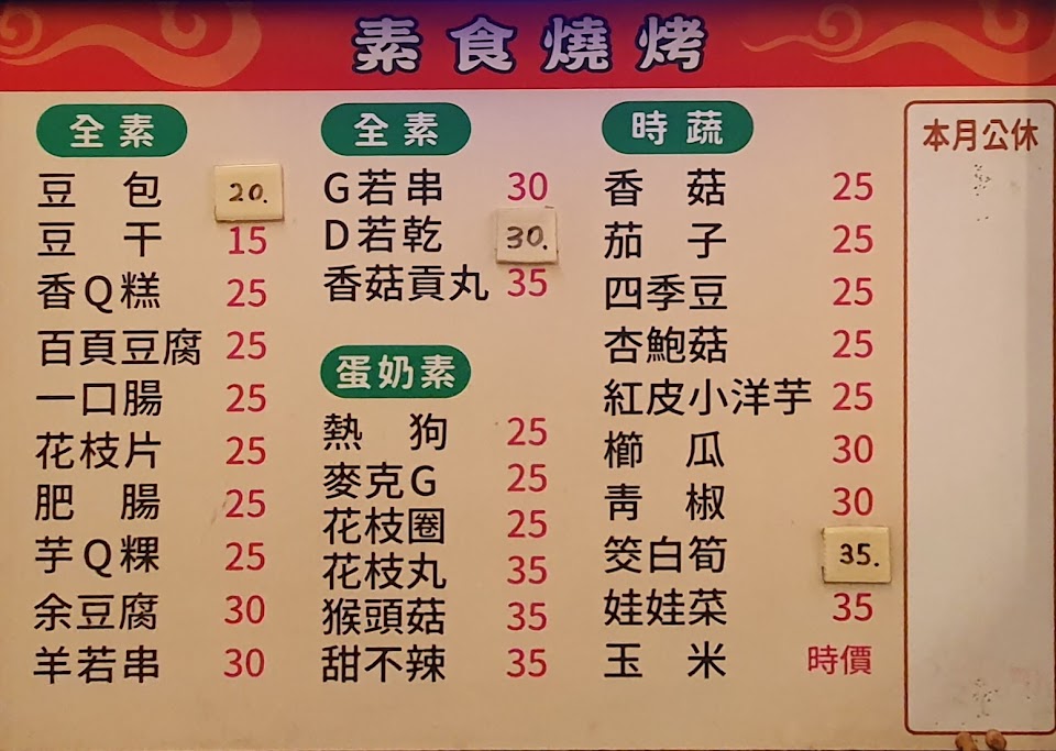 素食燒烤, 糯米g 筒仔米糕, 燒烤 自由點, 烤物, 素食碗粿