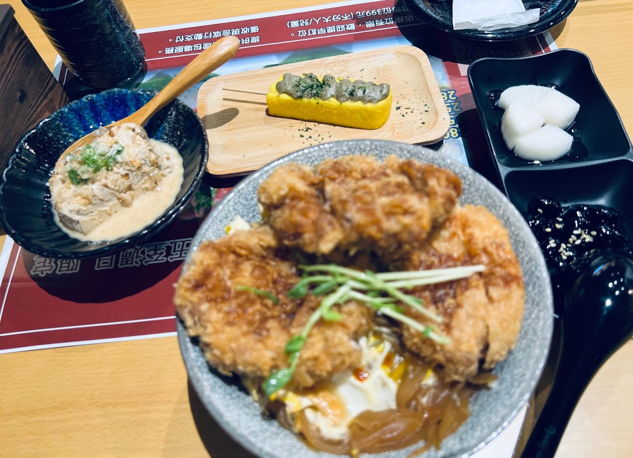 餐點很好吃! 今天點的是厚切豬排丼飯和軟殼蟹海鮮丼飯,以及加購的蟹膏厚蛋燒、蒸蛋,還有打卡送胡蔴時蔬。 丼飯份量很多飽足感十足哦~ 服務 內用 餐點類型 午餐 平均每人消費金額 $200-400
