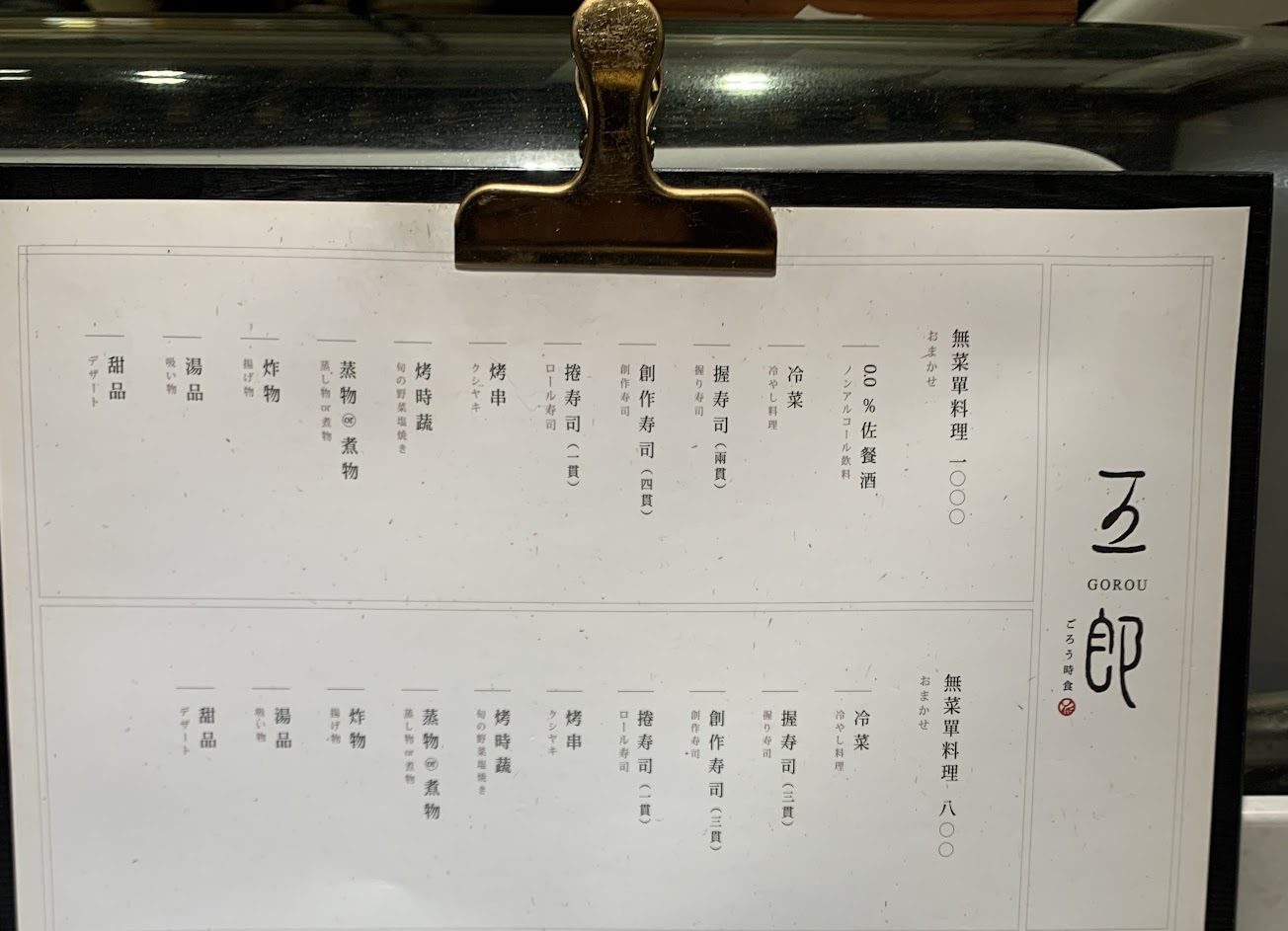 無菜單蔬食日料 所有餐點不含動物性調味 採線上預約制 只有無菜單料理 已無單點選項 分1000/800$兩種價位 1000$含無酒精紅酒