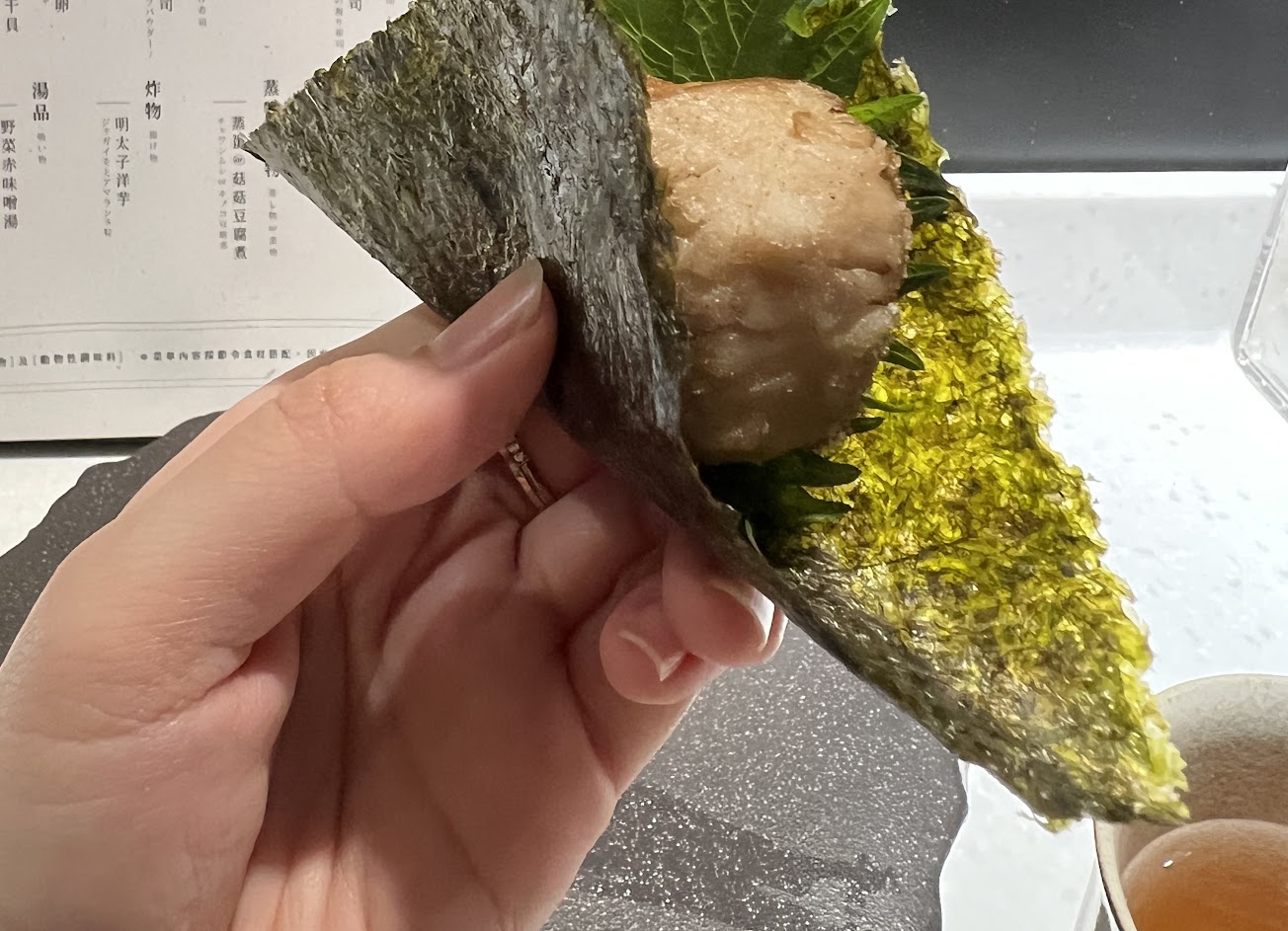 好多道都完全猜不透是如何料理而成、像是鵝肝醬、松露、明太子、軟殼蟹、干貝、炸生蠔、星鰻握壽司…..