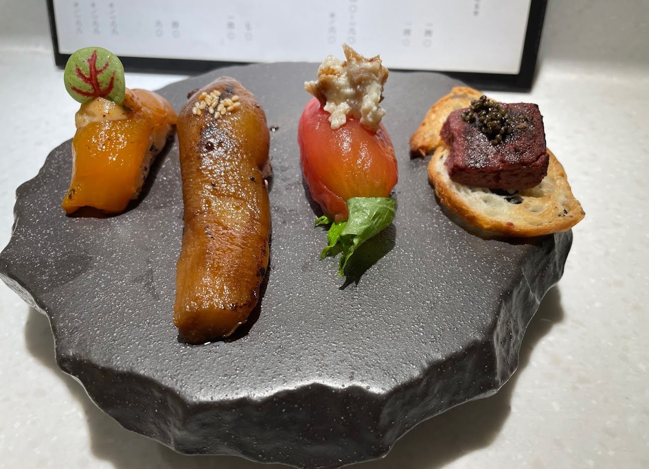 起司焦蕉卷, 炙辣旗魚握壽司 星鰻握壽司 法國鵝肝醬三寶