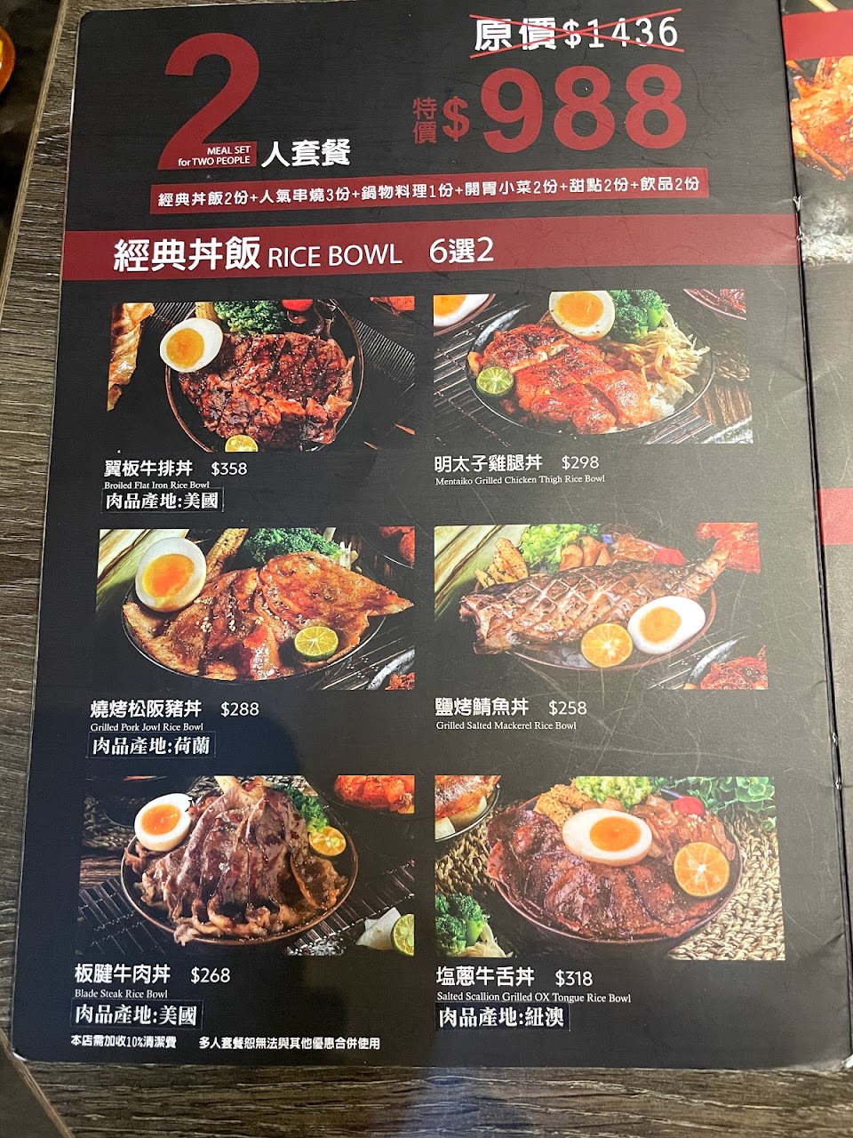 魚下巴, 明太子鮭魚丼飯, 干貝牛五花