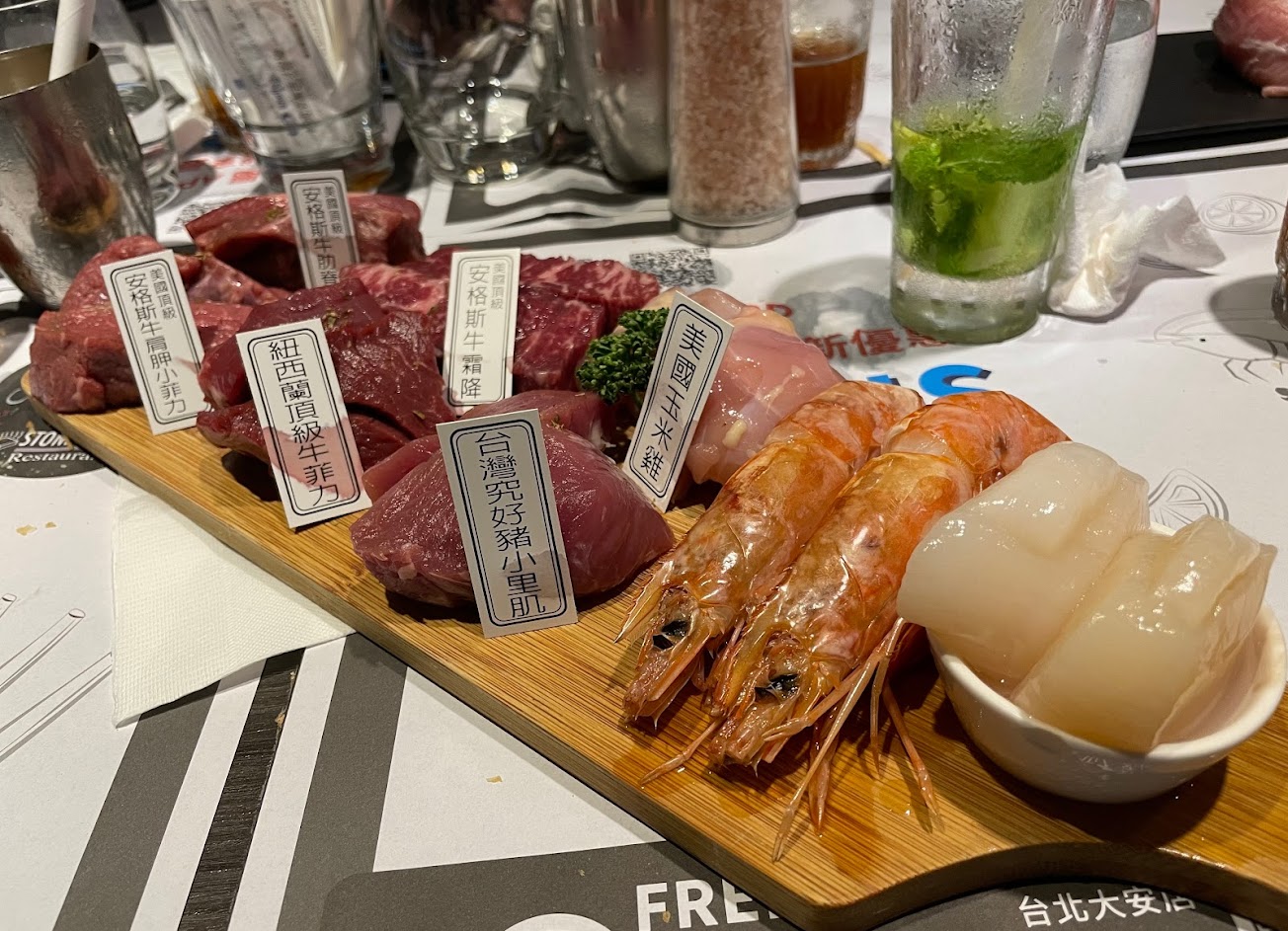 2021.10.23 星期六 晚上 數天前預訂到20:15pm的位置 各式各樣的牛肉品項及海鮮品項 套餐選擇有三種也是個很好的方式 可以照個人喜好做選擇 附近停車場🅿️很多 每一種牛肉的肉質口感不同 依據個人喜好選擇喜歡的肉種 服務好、氣氛佳 400度的岩板溫度也是首次體驗 真的很特別的排餐享受