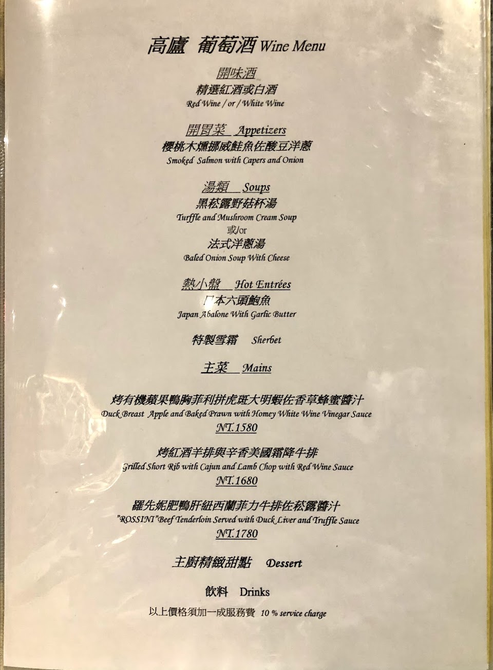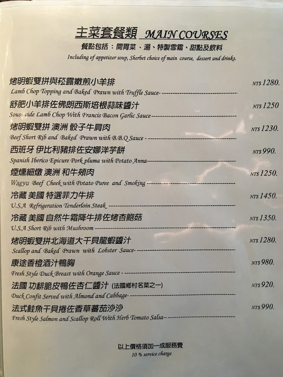 物價好像都沒上漲,十幾年前就這個價格,從中正路搬過來依然有老法式餐廳的感覺
