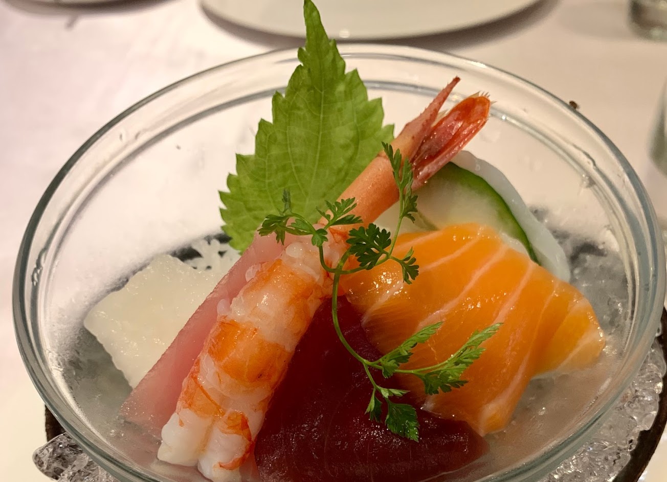 開胃菜生魚片的蝦子蝦腸泥沒有去除,
