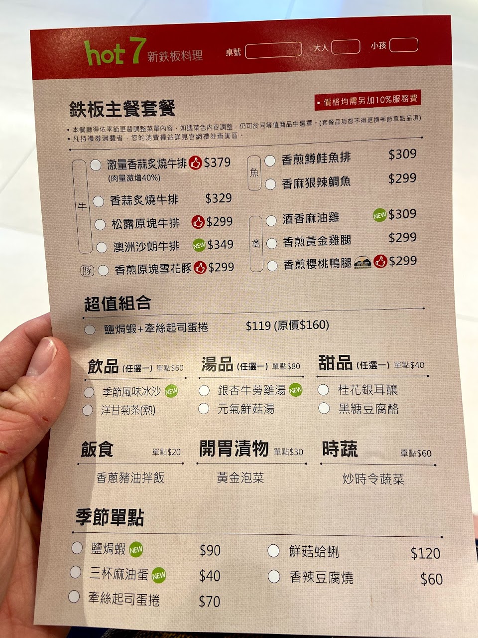 2024最新在地推薦餐廳的菜單_hot 7鐵板燒 高雄漢神巨蛋店的菜單、圖片