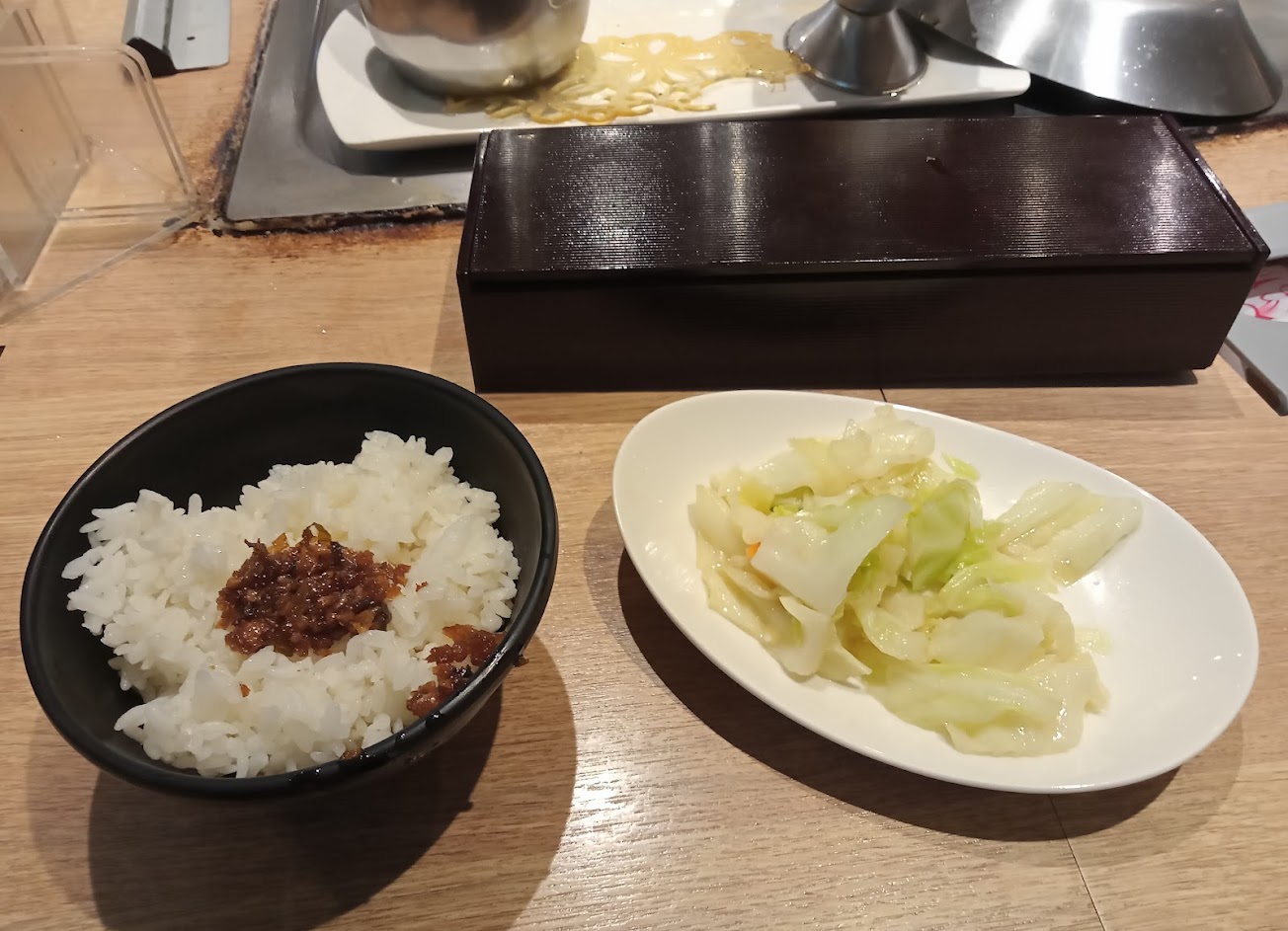 高麗菜菜梗偏多,調味清淡,一點點香氣,桌邊有鹽巴跟胡椒可以自行加重鹹度!時蔬皆沒有鐵板的鹹香!