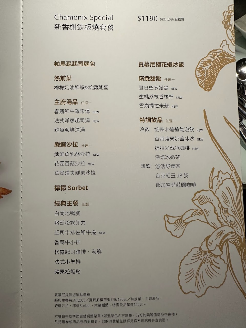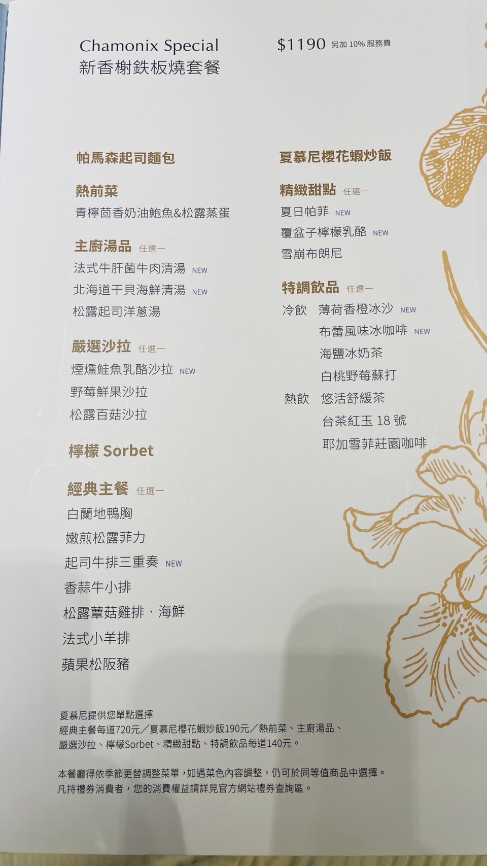 2024最新在地推薦餐廳的菜單_夏慕尼新香榭鐵板燒 高雄博愛店的菜單、圖片