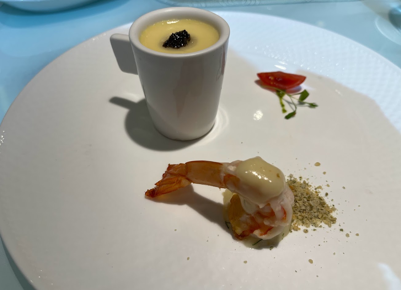 熱前菜、松露起司洋蔥湯、凱撒鮮魚沙拉、波士頓龍蝦半隻、老饕牛排&肋眼牛排佐白蘭地紅胡椒醬、櫻花蝦炒飯、柑橘伯爵帕菲、季節水果茶