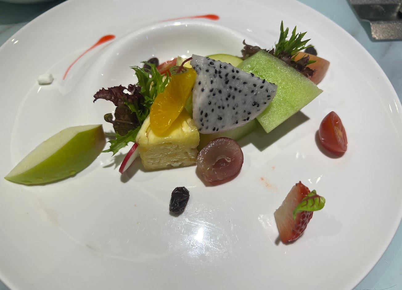 首先是出餐的速度,似乎有不成文的規定,必須坐滿一區煎台的位子,主廚才會開始準備出餐,若早到也只能在樓下乾等,有人晚到也只能入座後等主廚慢慢的熱前菜,實際上吃到第一口菜的時間可能是預訂的半小時後了去,建議不要餓著肚子太久來用餐,否則可能會等到惱怒。