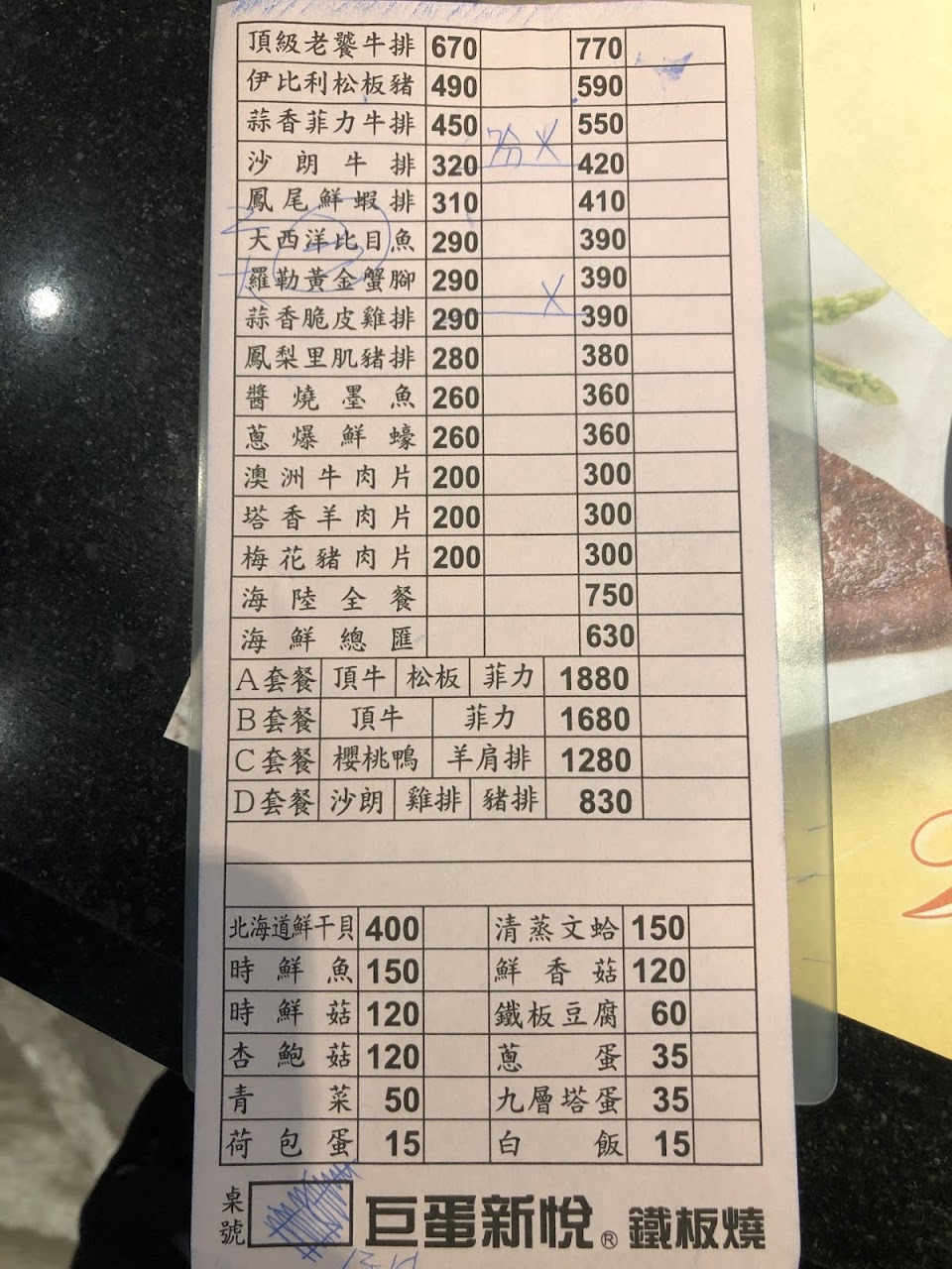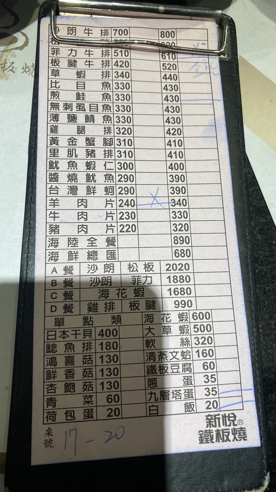 2024最新在地推薦餐廳的菜單_新悅鐵板燒 漢神巨蛋店的菜單、圖片
