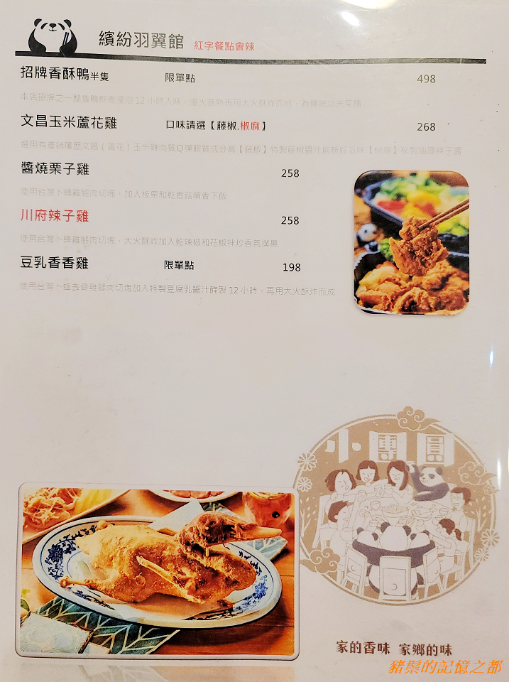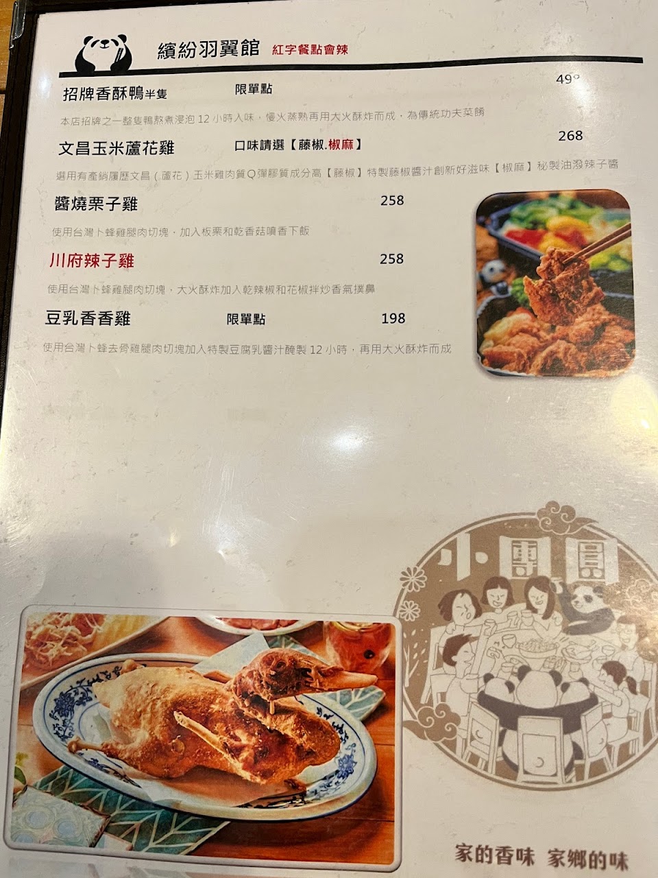 道地的眷村料理,整體氣氛非常的一致性,不時就有熊貓造型設計出現(筷架、杯子)。料理也非常好吃,大推香酥鴨,酥脆外皮肉質軟嫩,一定要點來吃吃?還有炸銀絲卷,提供的是花生煉乳,超級超級好吃?有機會一定要吃看看??