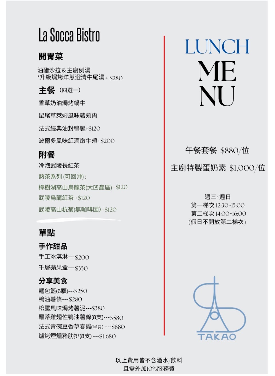 2024最新在地推薦餐廳的菜單_索卡藍帶廚坊 La Socca Bistro de style familial 法國家庭式餐酒館 [預約制]的菜單、圖片