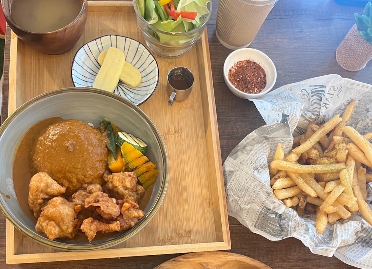 超推唐揚雞咖哩飯,附的沙拉也非常也有誠意?單點的布丁有香草籽好幸福!