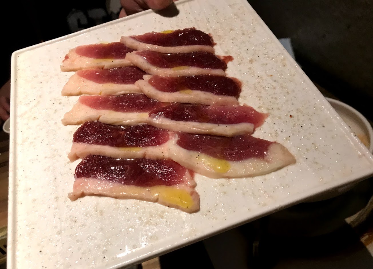 個人對燒肉蠻無感的,吃起來沒有特別的感覺,但是單點的豬里肌肉很像骰子肉塊很Q彈不錯吃~ 套餐附的鴨胸肉也是非常好吃!