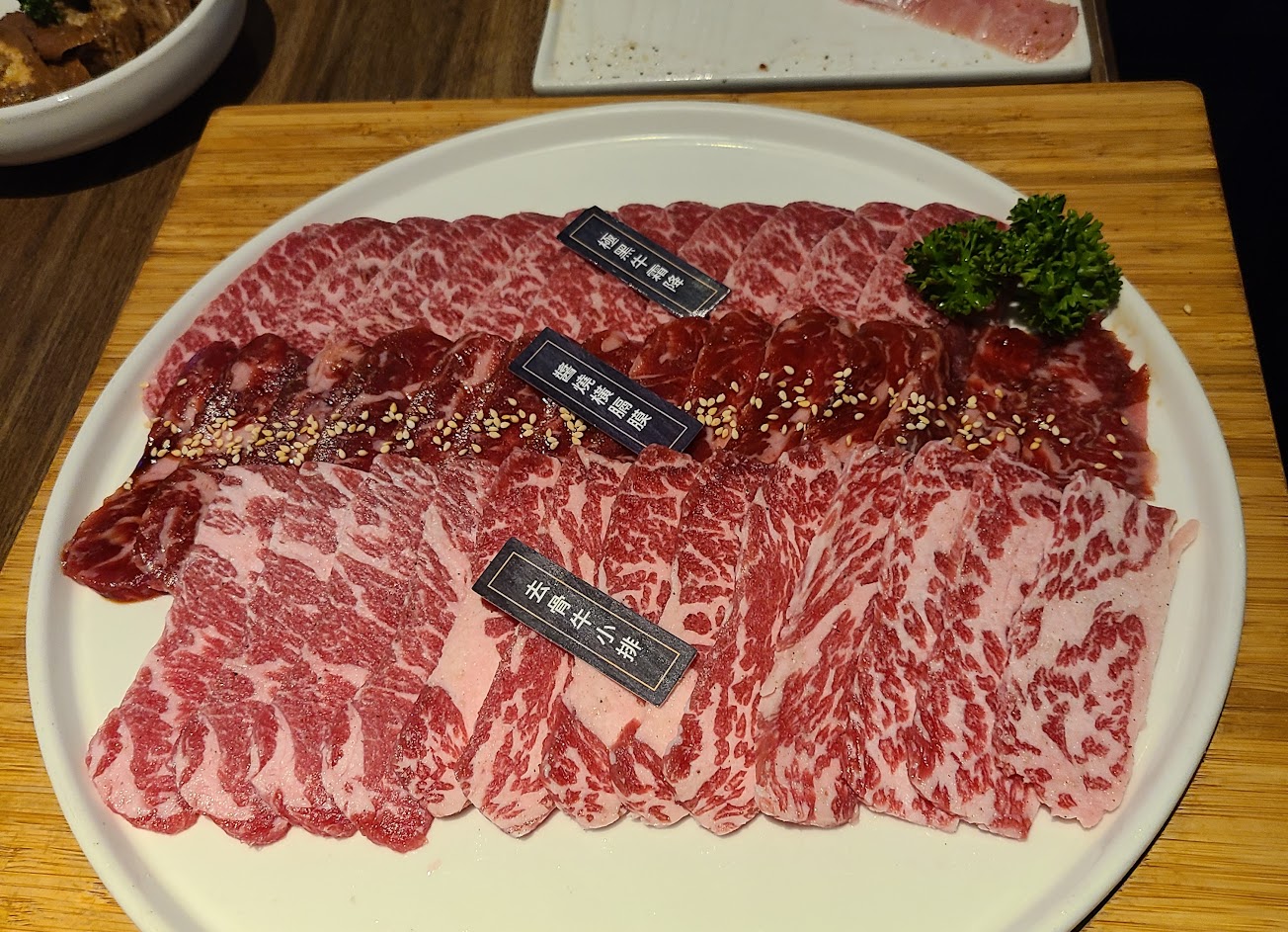 不錯的燒肉店。從提供的肉質。換網速度。服務態度。都是很好的體驗。 用餐人數真是不少。 由於是慶祝用餐。就直接點了最高價的極黑和牛套餐二人組。內有橫隔膜、極黑牛霜降、薄牛舌及和牛樂條。每個食材都處理的相當不錯。厚薄恰到好處。真是不錯的烤肉體驗。 湯品、沙拉、甜點、及飲料,至少都讓我可以有非常好的感受。平常烤肉附的湯品。常常煮到都爛了還沒喝一碗。今天的湯品至少也喝掉了半鍋。味增鮭魚湯。 甜點選擇了雪花冰及黑糖蜜。也是相當不錯。很開心的吃完。