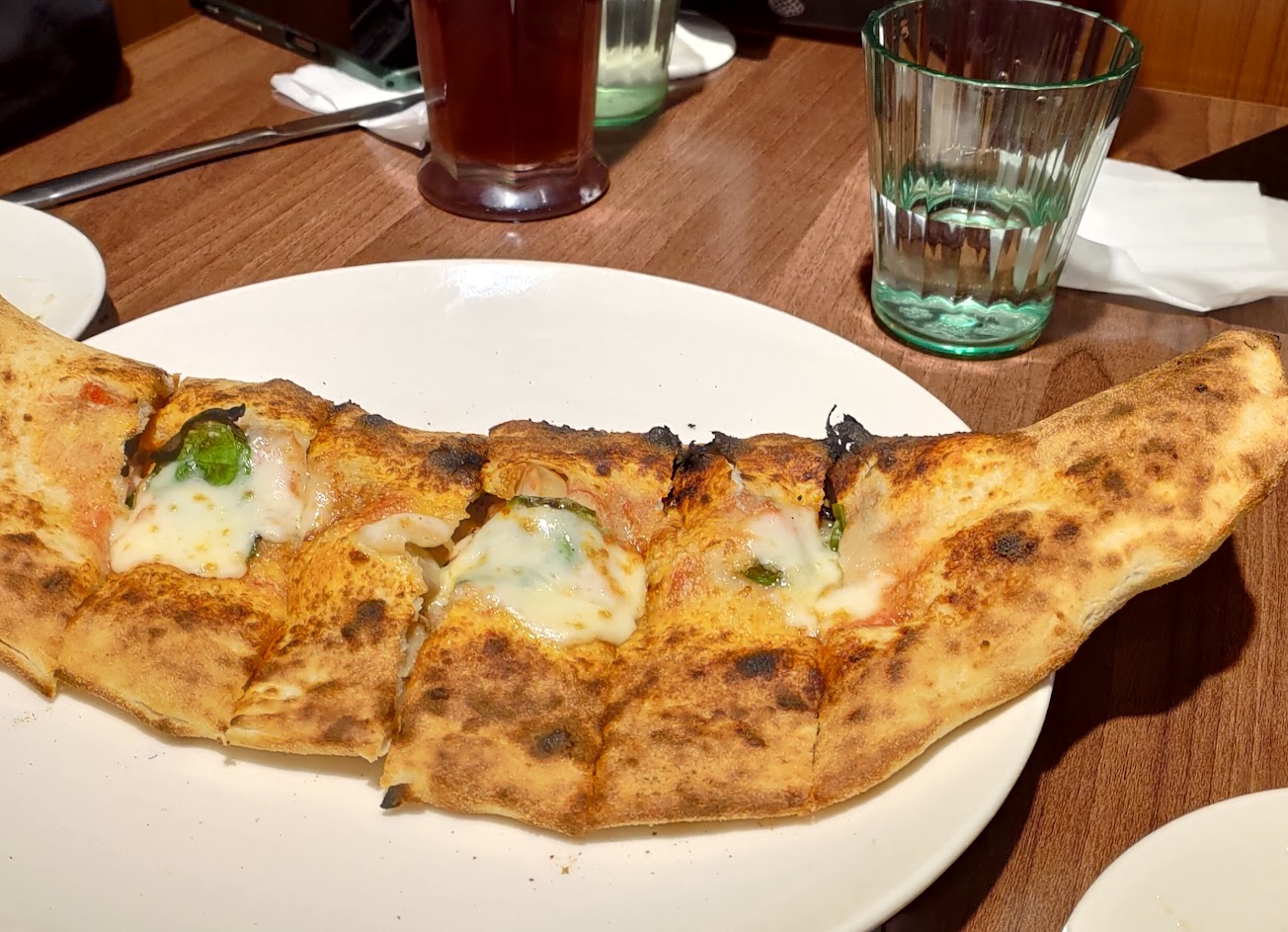 餅皮很好吃,香氣撲鼻 中央濕潤薄軟和外圍Q彈的口感變化 配合著上頭濃鮮香的醬和料 回過神來已經吃完一整片 還有討人喜歡的卡諾里捲,很適合作結尾甜點
