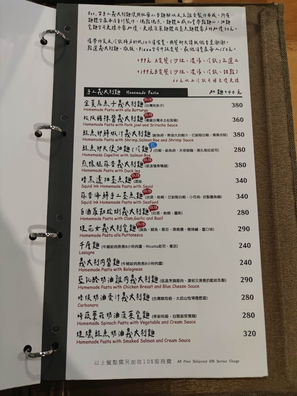 2024最新在地推薦餐廳的菜單_Dor,留手工義大利麵(巨蛋店)的菜單、圖片