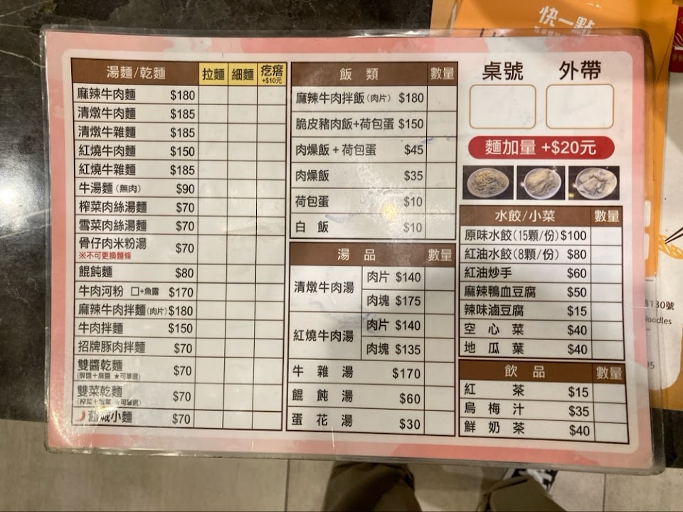 麻辣牛肉麵稍油,但湯還蠻好喝的!麻辣鴨血豆腐很好吃,可以試試看喔 服務 外帶 餐點類型 午餐 平均每人消費金額 $1-200 建議的餐點 麻辣牛肉麵