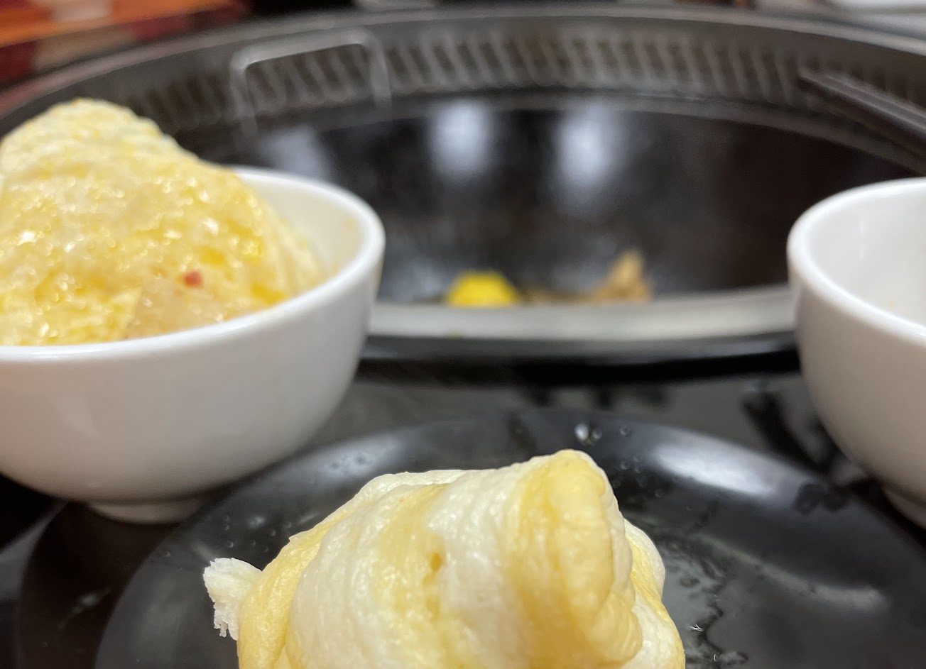 玉米餅在高雄其他地方幾乎沒見到過,這次終於吃到。服務人員會拿著發酵好的玉米餅一片一片貼到鐵鍋內壁再蓋上鍋蓋蒸一下,幾分鐘後就可以吃到一面脆脆的但另一面非常鬆軟的玉米餅啦!蘸一點湯汁也很好吃。