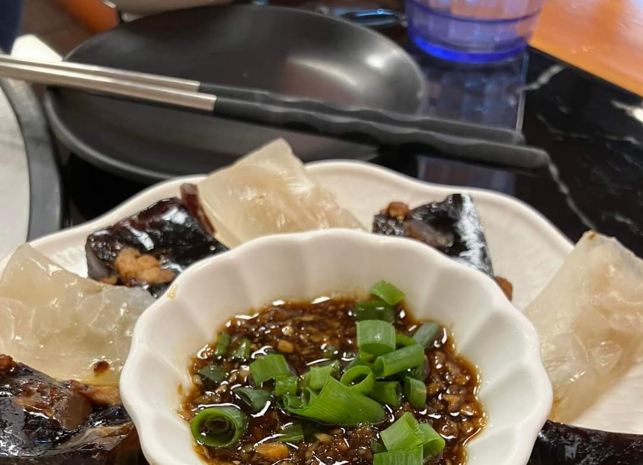 豬皮凍網路是說必點,但我個人覺得還好喔,本身微鹹,但切碎碎的沒有吃豬皮感,沾醬口味確實特別,但感覺就吃醬料的,對我來說太鹹