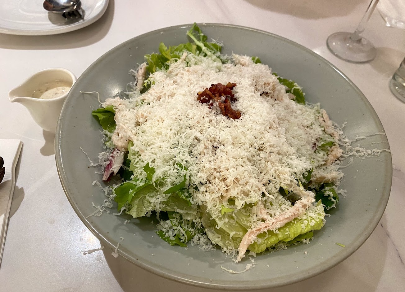 點餐的時候舉手都沒有服務員發現,還要我們自己走到服務員旁邊請他點餐。 點了一份松露女兒紅卡波納義大利麵加價彈跳騷莎海鮮冷盤,海鮮口感很好,調味也不錯,美中不足的是沙拉生菜有些已經爛掉了。義大利麵的味道我個人不太能接受,不知道是女兒紅下太多,還是松露本身的苦味,覺得整個麵的苦味太重了,不過份量蠻多的。 最後⋯有收服務費但也沒有服務員幫忙加水⋯都不知道是被服務到什麼⋯?