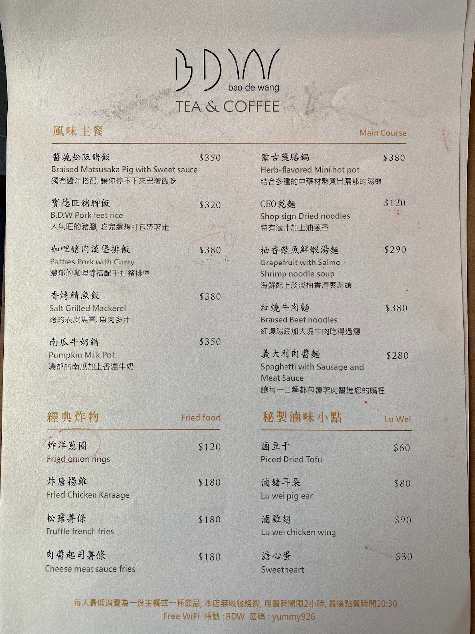 2024最新在地推薦餐廳的菜單_B D W 寶德旺 Tea&Coffee的菜單、圖片