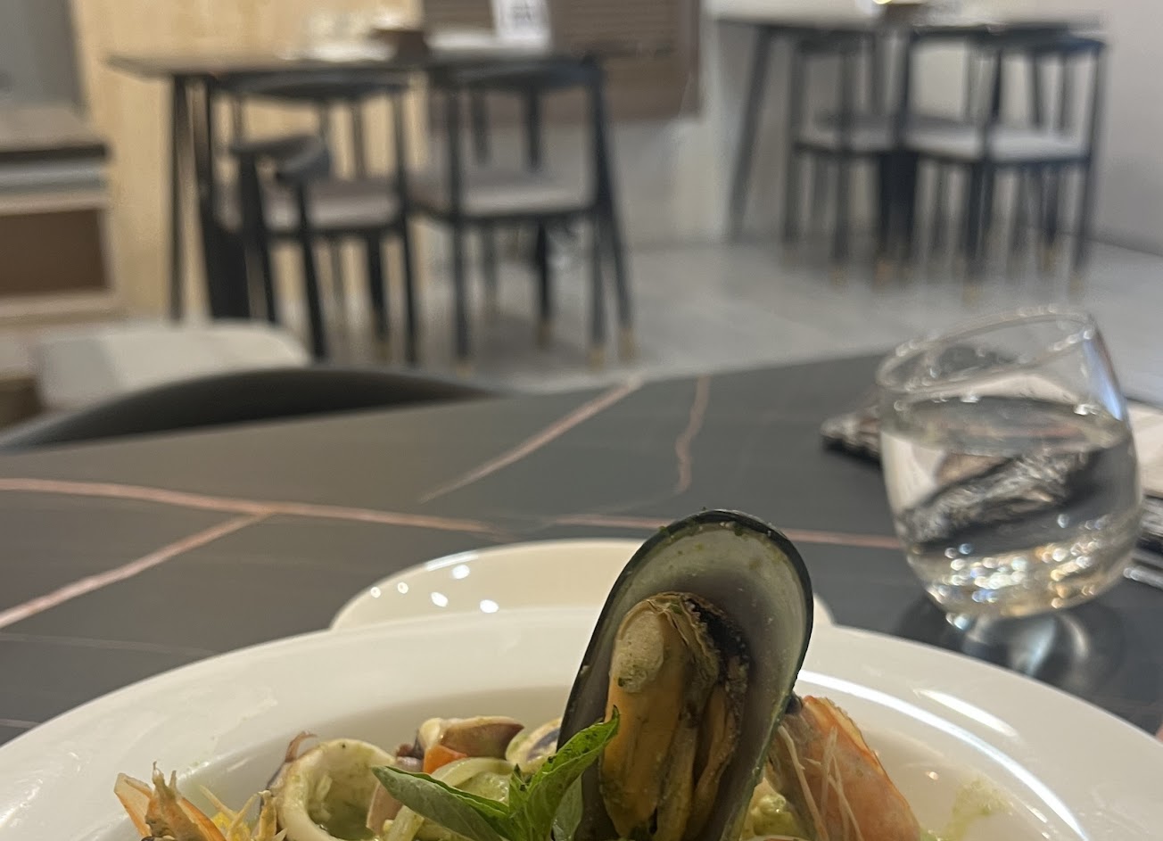 店裏爆滿服務還是很優秀 燉飯用長米 恰到好處不乾不濕收汁收的剛剛好 海鮮烹調適度沒有過老 義大利麵口感也是剛剛好 水杯很特別 帶寶寶跟推車還幫忙安排了舒適的位置 很感謝❤️