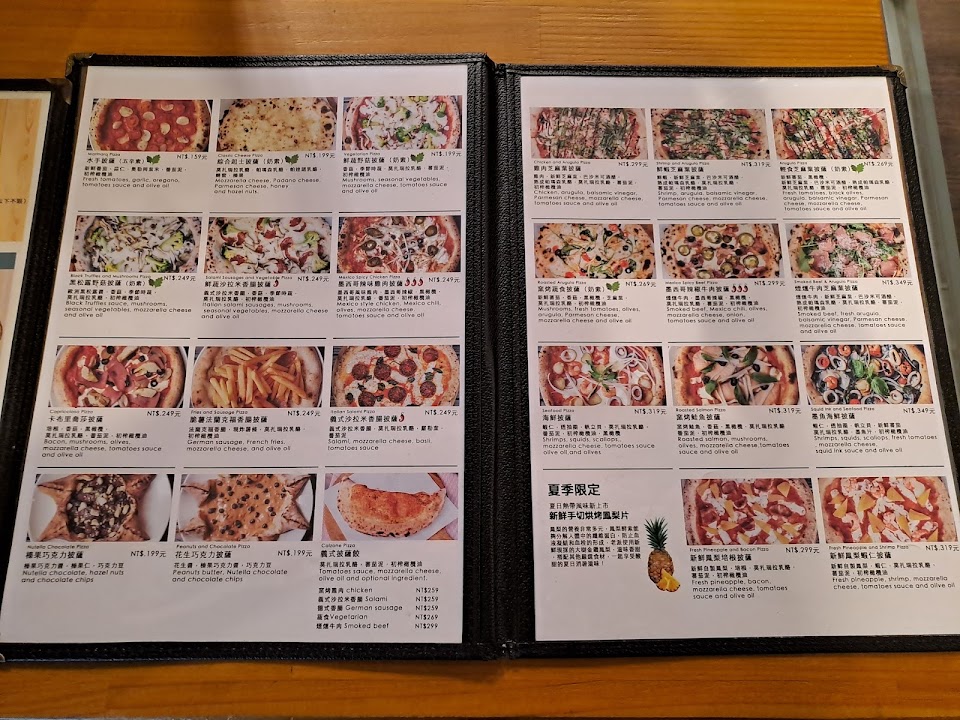 皮很像歐式麵包的拖鞋或佛卡夏之類的口感,但又再Q些,嚼到隔天下顎很酸。口味基本上都不錯,芝麻葉有點苦味家人不太接受,花生巧克力甜披薩中心脆、邊緣Q,口感特殊好吃。