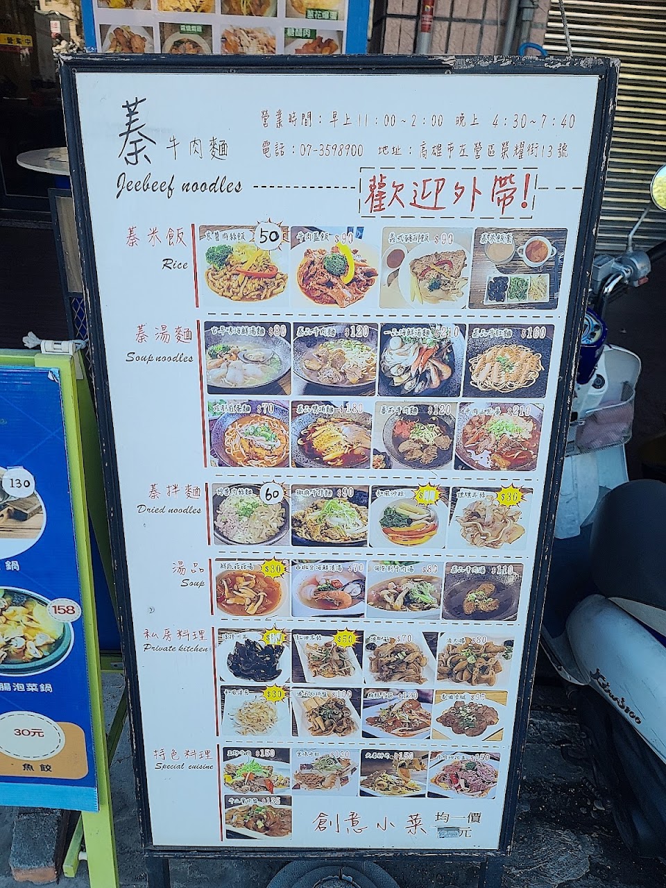 免費摩托車停車位有限,牛肉麵湯頭還不錯可是麵條個人感覺不優,反而牛肉蓋飯牛肉很嫩義式豬排飯也不錯吃,就是肉片有點薄