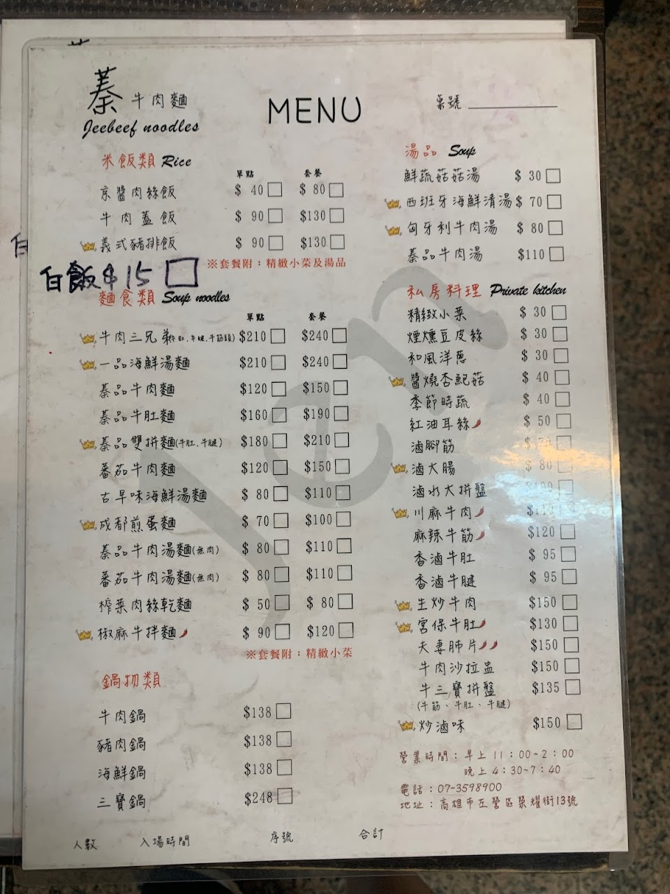 位於高雄榮總醫院附近的「蓁」牛肉麵店,不僅提供多種美味的牛肉麵,還有燴飯、小菜和私房料理等多種選擇。店家的牛肉麵口感鮮美,牛肉份量也給的誠意十足,湯頭濃郁,配料豐富,讓人回味無窮。除此之外,還有多種口感豐富的燴飯選擇,以及多種美味的小菜和私房料理,讓您享受更多元的美食體驗。若您路過榮總醫院附近,不妨來到「蓁」牛肉麵店一探究竟!