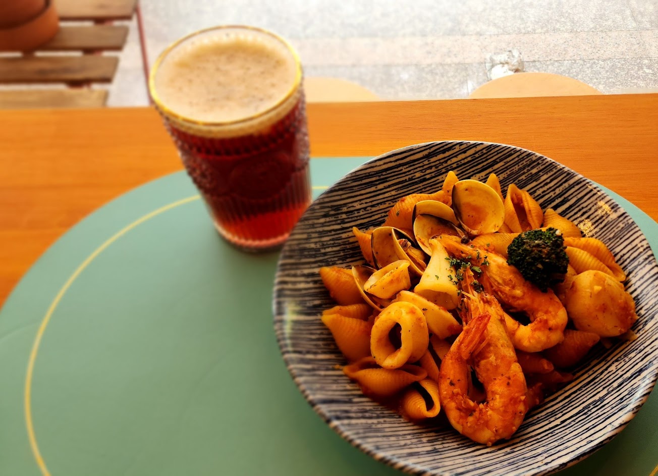 我點的是綜合海鮮青醬筆尖麵,青醬很新鮮很香