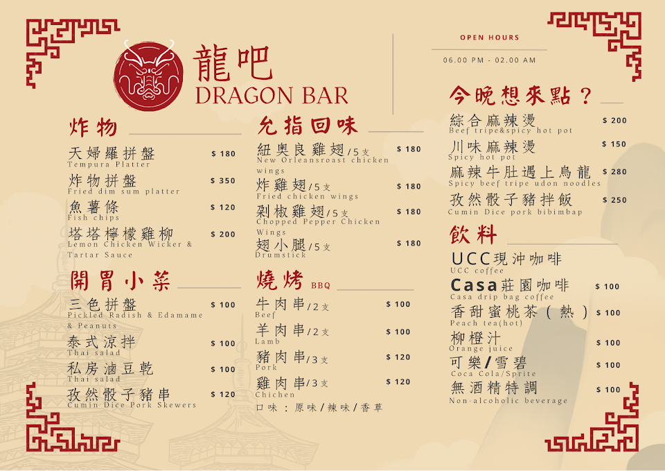 2024最新在地推薦餐廳的菜單_龍吧 Dragon Bar & Bistro的菜單、圖片