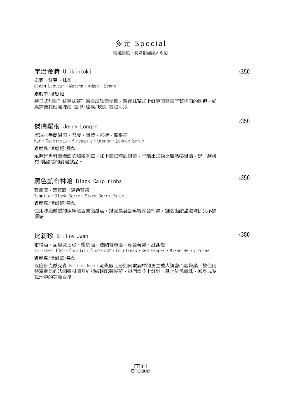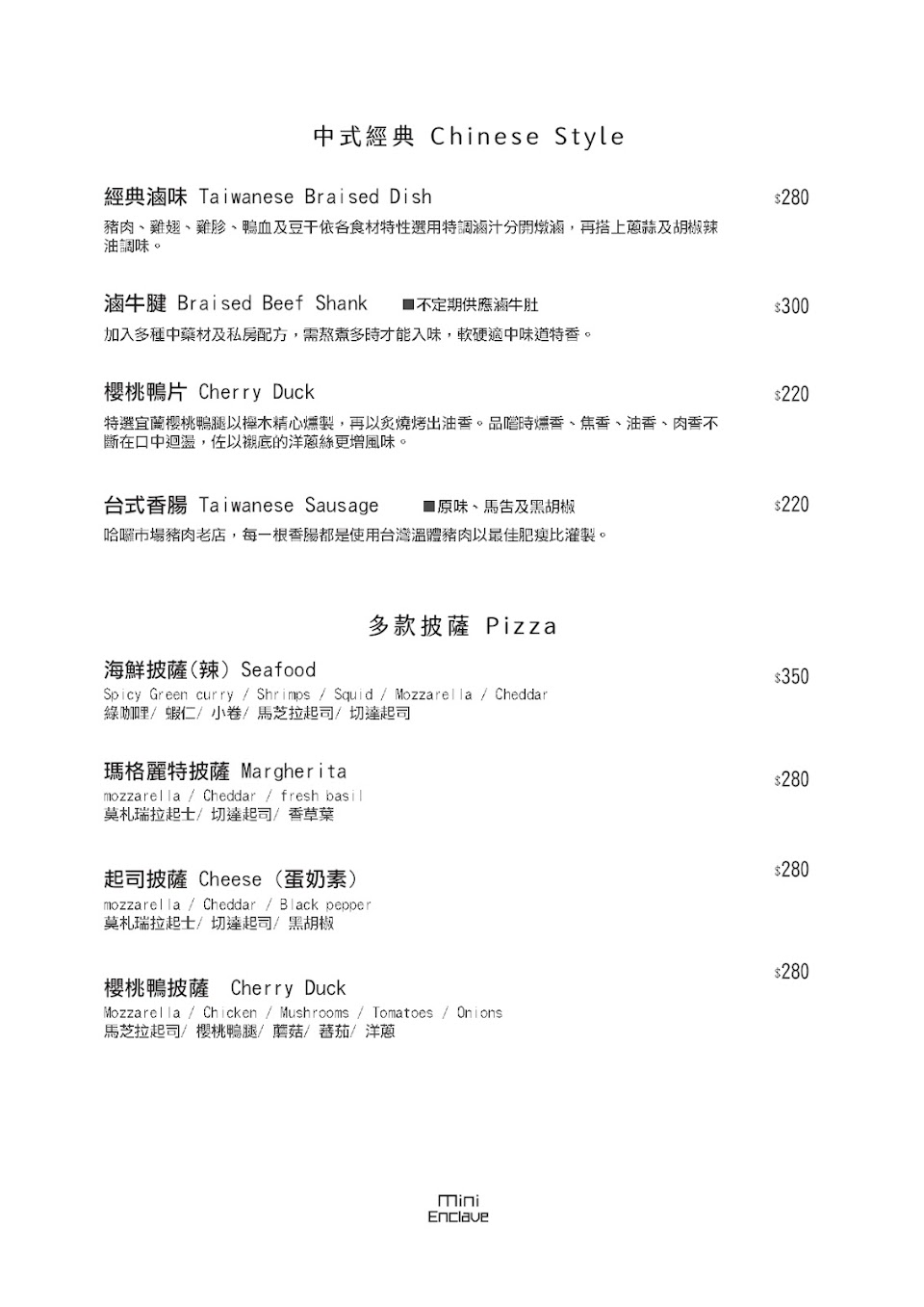 2024最新在地推薦餐廳的菜單_Mini Enclave 聚落的菜單、圖片