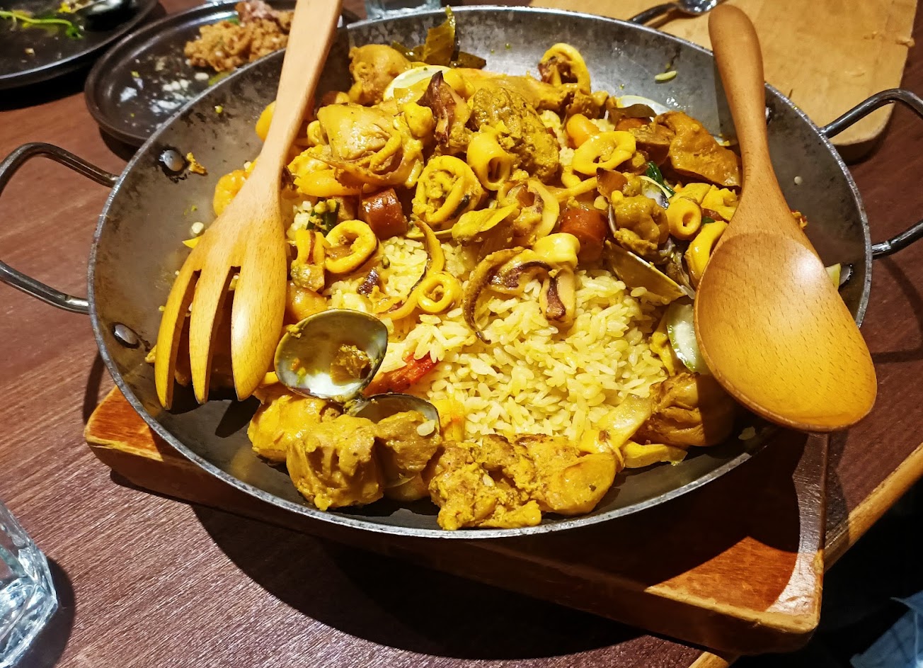餐廳以異國佳餚為主(有提供素食/蔬食菜單),餐點選項豐富,當天9人用餐,消費「金色三麥經典大拼盤」、「凱薩沙拉(蛋奶素)」「西班牙海鮮燉飯」、「松露野菇燉飯」、「德國豬腳」、「墨西哥雞肉餅」、「辣拌長舌」、「蔬食義大利」、「花心蔬脆披薩(蛋奶素)」和「嫩烤戰斧豬排」等…