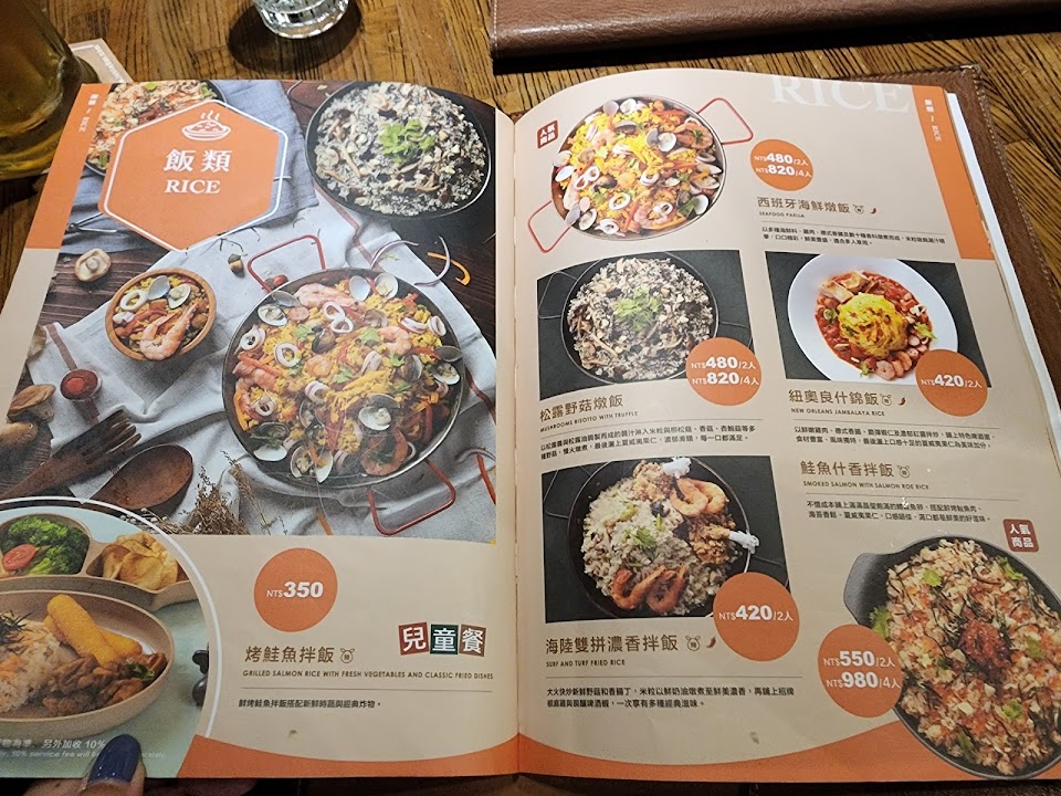 拼盤很大一份,但是豬腳是冷的 有點小貴 西班牙海鮮燉飯調味很好海鮮也很多 鮭魚蝦仁披薩就比較沒什麼記憶點 肋排很大一份好吃! 服務 內用 餐點類型 晚餐 平均每人消費金額 $800-1,000
