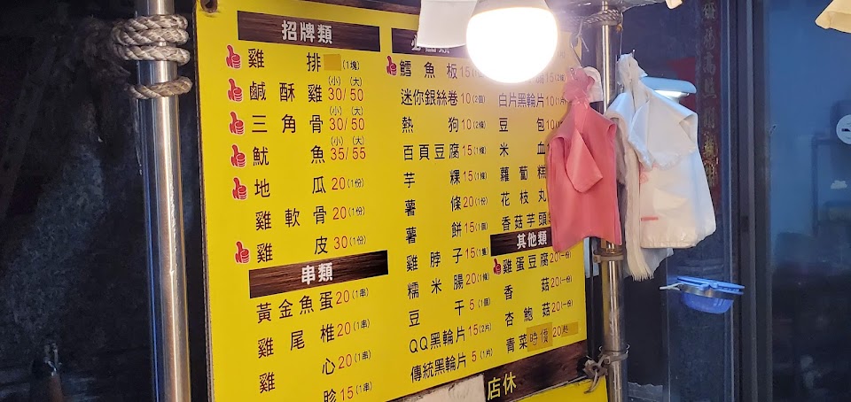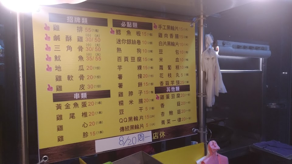 買了小份鹹酥雞$30、雞肉香腸$15/2條、小熱狗$15/3條、黑輪片$10/2片