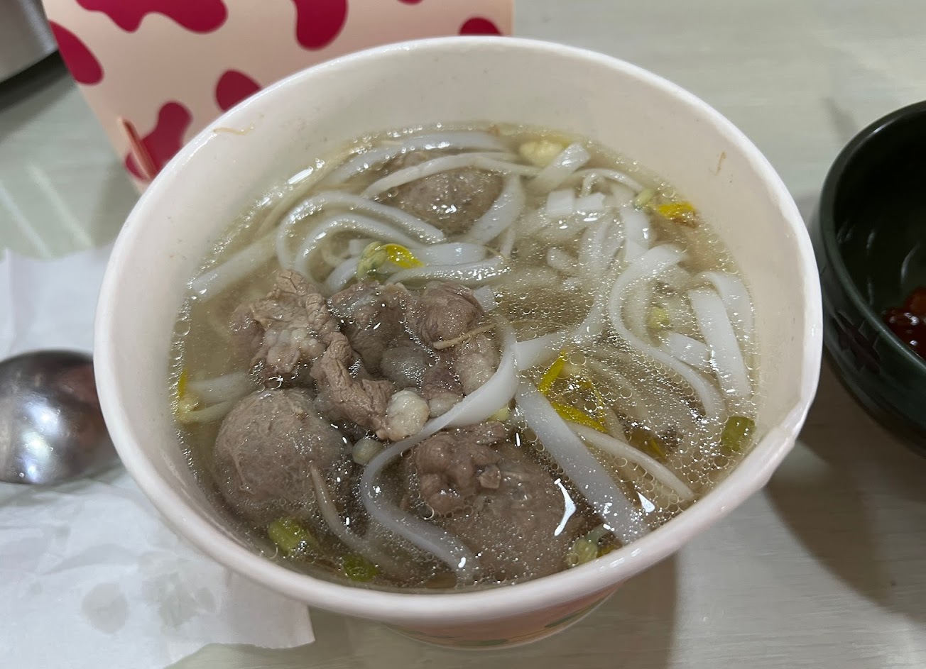 點牛肉丸加生牛肉河粉外帶一百六,丸子三顆、肉三片,料比以前縮水很多,品質沒維持好,遺憾