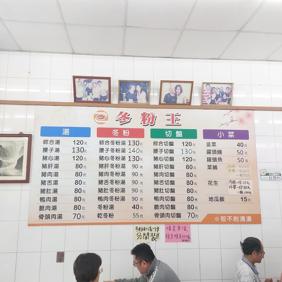 早在10年前就在舊的冬粉王店內吃過好幾次,而現在在新的店面也還是生意非常的好,但湯冬粉的湯頭真的有點淡了,而其他的豬內臟料理還是沒變,都燙的粉嫩粉嫩的,就是價錢調得貴了一點,用餐環境還好,而員工大姊們講話聊天請聲音放小,謝謝合作!