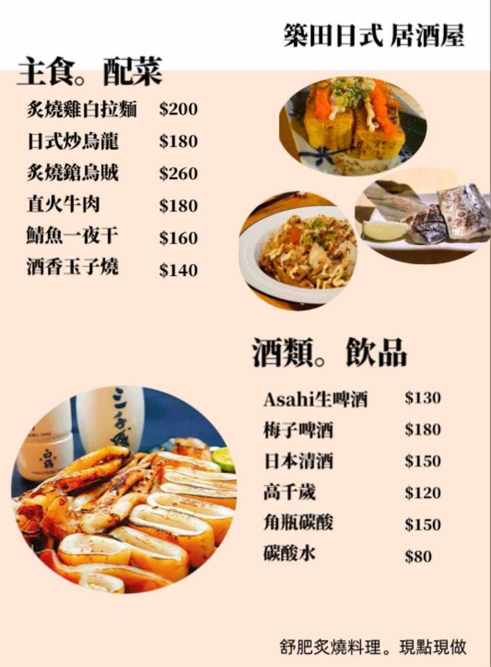 2024最新在地推薦餐廳的菜單_築田日式 居酒屋(店休日請看FB公告)的菜單、圖片