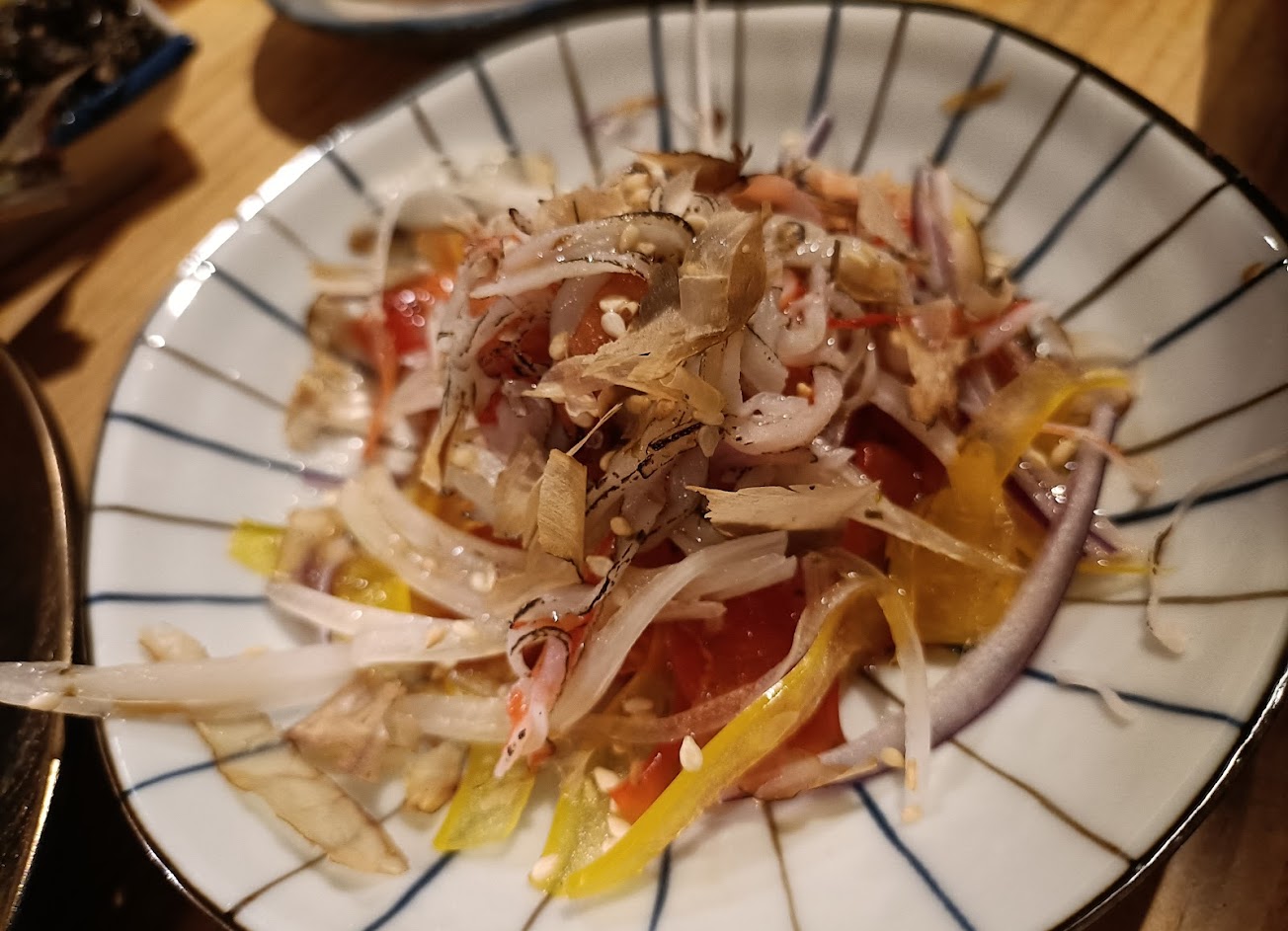 上菜速度非—常—非—慢。試喝的梅酒很不錯,但是整體價格偏高。生啤不錯,鮭魚卵豆腐很好吃,烤肉類和百頁不好吃。起司馬鈴薯太鹹,考中卷像是水煮的,鱈魚一夜干還可以。蚊子真的很多,要自備防蚊液。